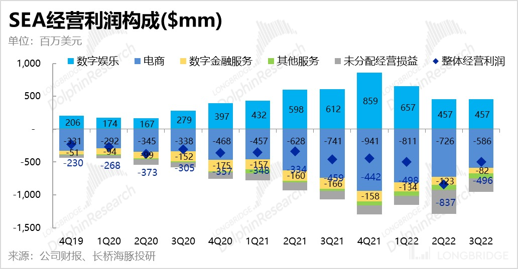 由于集团游戏板块已经烂透,市场对其也已不抱希望。海豚君认为,市场核心关注的点只剩电商板块的减亏速度,甚至连 GMV 的增长重要性也已下滑。因此,在公司接连推出巴西以外的其他南美国家本地市场(还保留跨境业务),且在剩余的东南亚市场也大幅裁员并显著提高变现率后,原本已增长神话著称的 Shopee 本季 GMV 增长也已完全停滞,但对此市场大概率也会 look through,下文将分析的盈利情况更为重要。