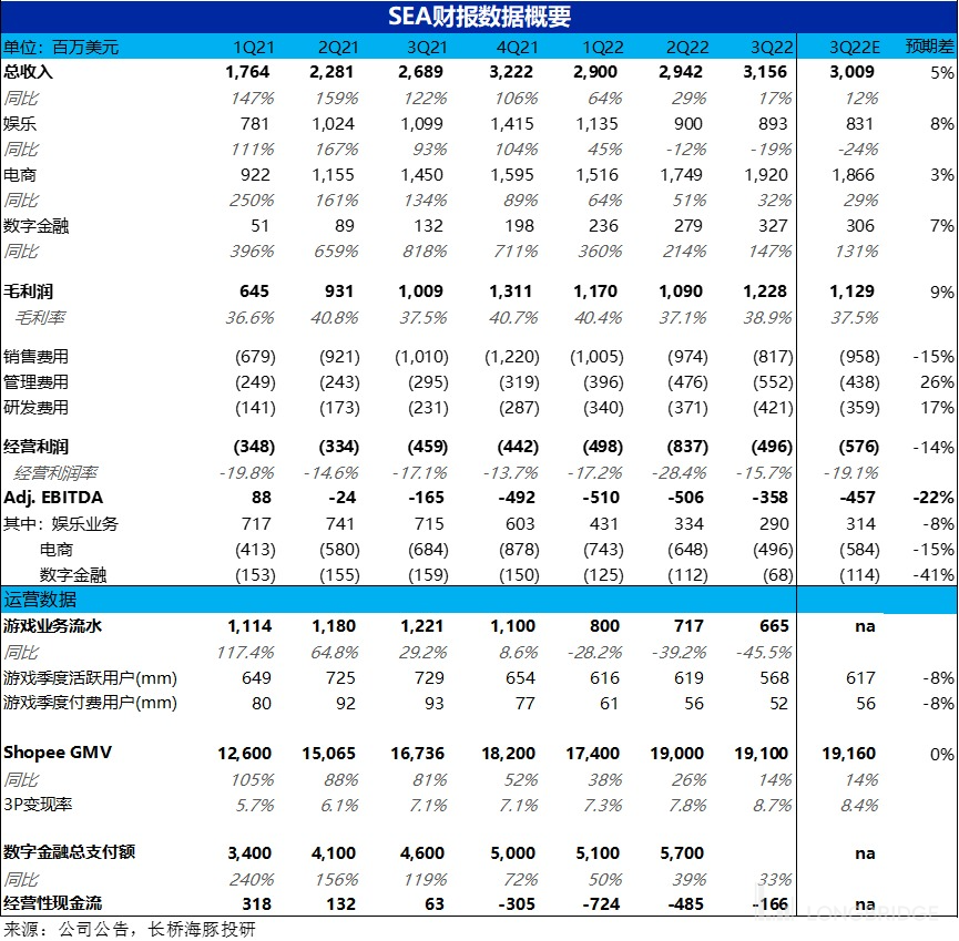 11 月 15 日晚美股盘前,SEA 冬海集团公布了 2022 年三季度财报,详细来看: