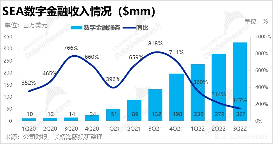 财报表现上,SeaMoney 数字金融业务本季实现收入 3.3 亿元,高于市场预期的 3.1 亿元,同比增速也还高达 147%,继续业务早期的高速成长阶段。
