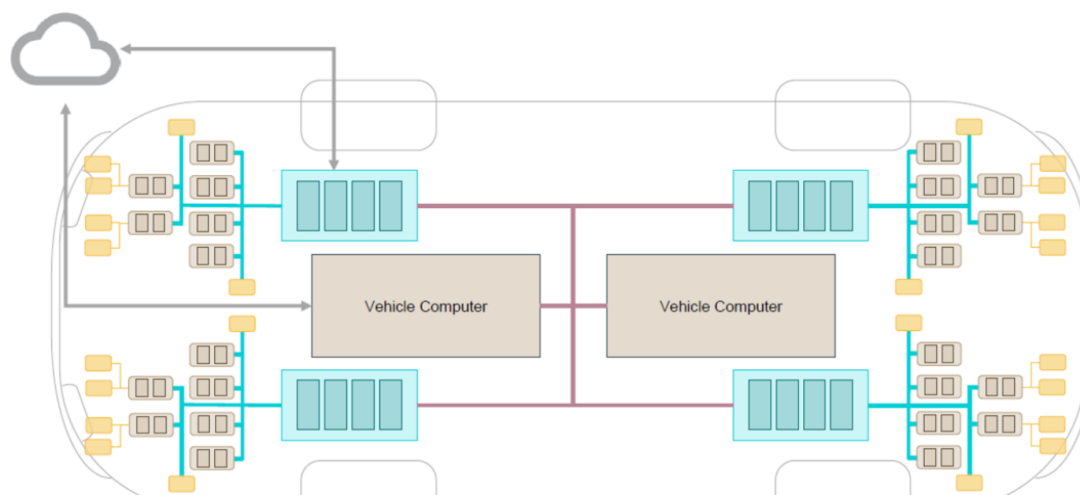 而现在,这些ECU的逻辑运算、控制命令等任务开始被几个集中的域控制器(DCU)取代,大量的功能经由DCU的运算控制,直接命令执行机构实现功能。