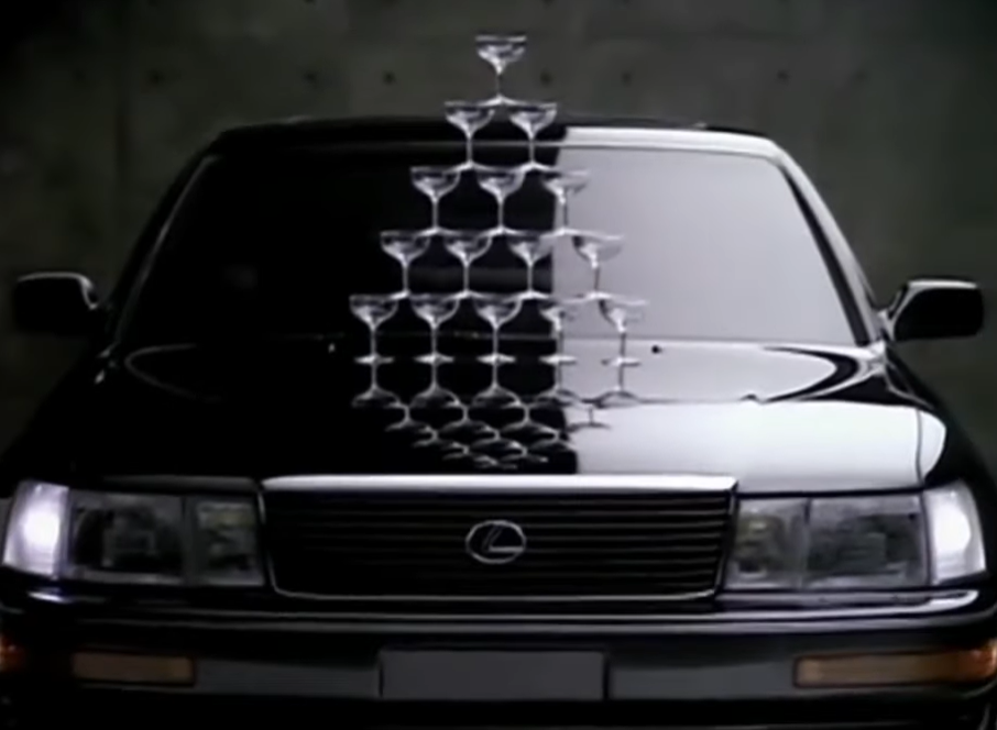 彼时出现在片中的雷克萨斯LS400,发动机盖上摞起了五层香槟杯——在发动机开足马力、时速达到230公里的情况下,15个玻璃杯几乎纹丝不动。