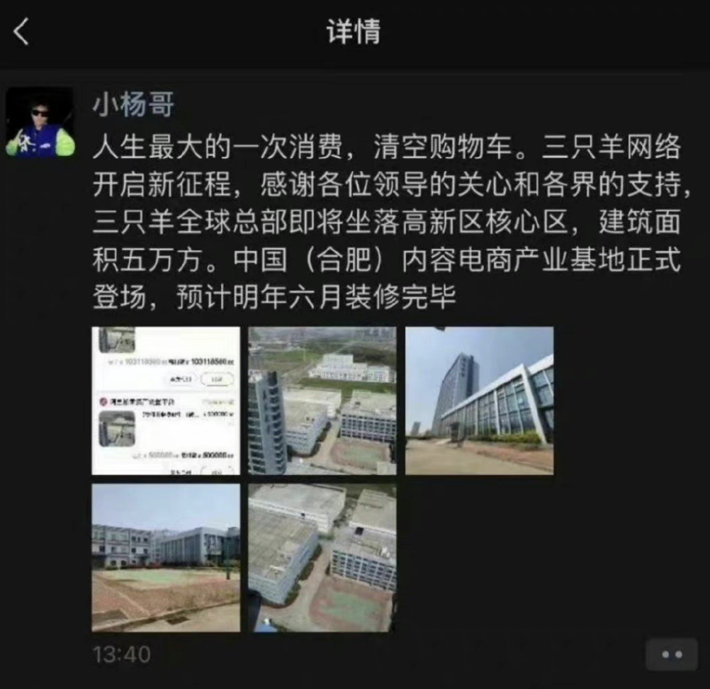 就在今年11月,疯狂小杨哥买下一栋楼的消息被顶上热搜。据了解,这家厂房的前身是一家专注于光学产品研发的科技企业,小杨哥通过法拍的方式接手了这座厂房。面对“网红干倒了高科技公司”这种说法,小杨哥在直播中解释,是因为公司扩大规模需要。三只羊官网显示,三只羊是抖音、快手十大MCN机构之一,旗下拥有300多个账号。
