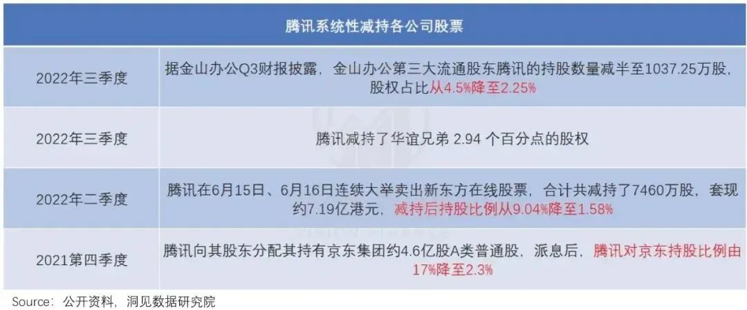 2021年底,已有消息称阿里将卖了亲儿子微博。而今年以来,更是有字节被爆,裁撤整个战略投资部;阿里为了让蚂蚁上市,宣布与蚂蚁的业务割席;腾讯在被传抛售美团之前,已减持了四轮,包括华谊兄弟、新东方、京东等。