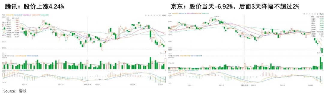 就在腾讯于去年12月宣布减持京东后,京东当日股价跌近7%,但隔日便反弹逾1%,且在之后京东股价的表现优于恒生科技指数,并于22年1月创下了上市以来的最高市值,完全消化了减持的影响。