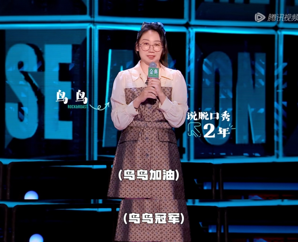 鸟鸟第四个出场,鲨疯了,妥妥的“冠军”种子选手。“最后一轮段子还不忘吐槽:她今年拿冠军,是因为笑果今年该捧女的了。”