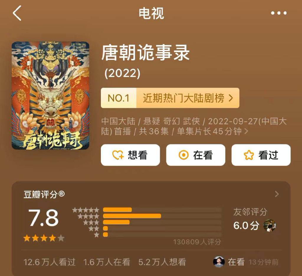 《唐朝诡事录》是将悬疑志怪类型的网络电影风格带入到网剧中的典型。草根侦探的视角、双男主的设定和特效场景的升级,是它能够脱颖而出的制胜法宝。单元案件的形式和主角的固定搭配,也让《唐朝诡事录》过渡到第二部,甚至形成系列剧。