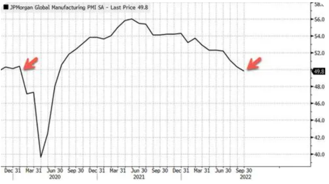 根据JP摩根发布的全球PMI指标,目前该指数已经回落到荣枯线以下,且加息周期叠加地缘危机加剧,使得数据下行压力越来越大。
