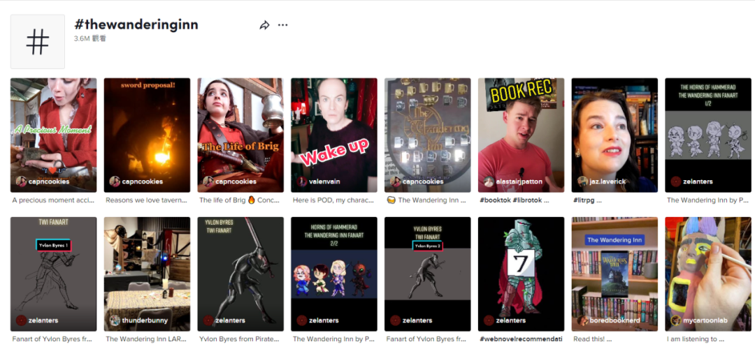 TikTok 上,带有 Pirateaba 代表作《The Wandering Inn》相关标签的短视频浏览量超300万