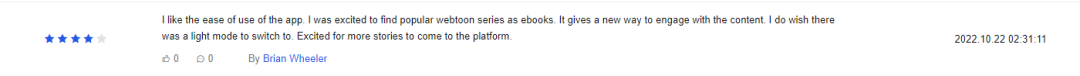 从 YONDER 在应用商店中的用户评论来看,UI 简约和易于查找是用户频繁提及的两大关键词。如果这些评论不是来自水军的话,目前看来 YONDER“精品化”的另一个侧面是产品的轻量化发展,加上主页精心排布的推荐功能,实际上也减轻了用户查找网文的时间成本,从而给用户留下简约且高效的整体印象。
