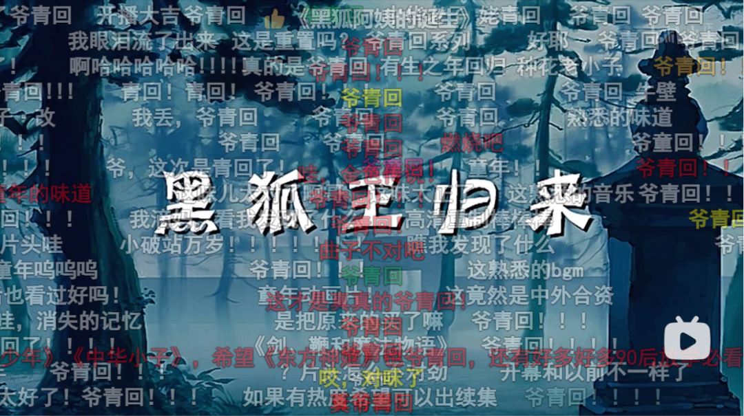 弹幕刷满了“爷青回”。/B站截图