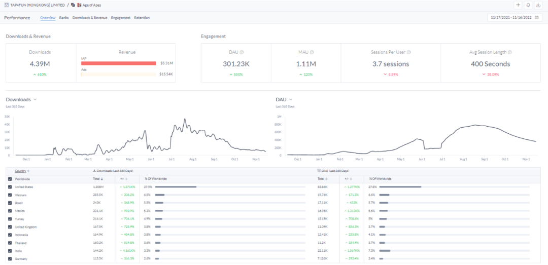 ③ 市场表现:过去一年,游戏总下载量超过400万,IAP营收超过500万美元。