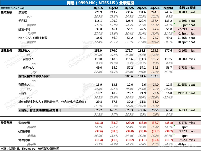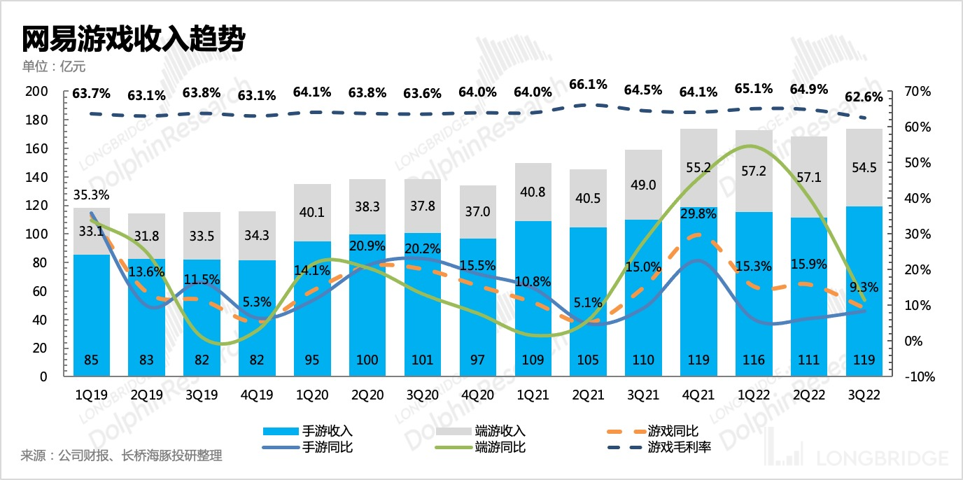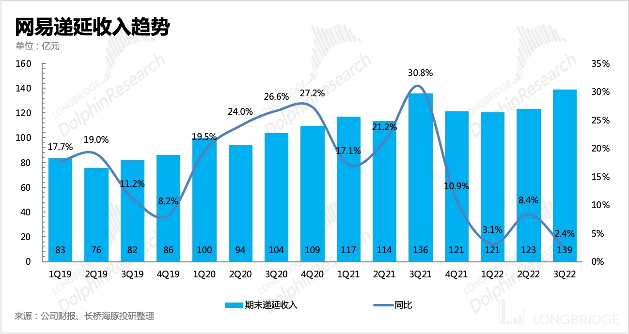 但占比最大的游戏业务压力也很明显,行业逆风再加上去年《哈利波特》、《永劫无间》分别提高了手游、端游的基数。尽管三季度有《暗黑破坏神不朽》上线,但上述两个影响因素还是多少拖累了增长,由于《哈利波特》大部分的流水在四季度确认,因此海豚君预计游戏业务上的压力还会在四季度更加明显。