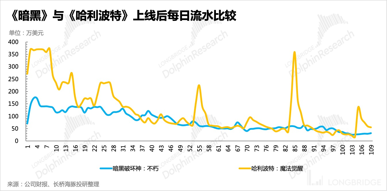 国内目前来看流水表现不及上线同期的《哈利波特》,而二季度以来,《哈利波特》流水持续萎缩。诸多因素造成四季度增长压力较大。