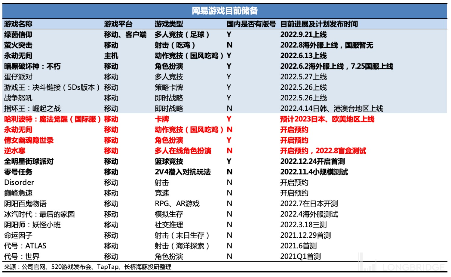 除了《隐世录》有版号可以上线之外,寄予厚望的《永劫无间》、《逆水寒》两款端改手的 IP,目前还没有版号,且还在数值调试阶段。《哈利波特》国际服一再延期,从 Q3 延到 Q4,而三季报直接改成了 2023 年。