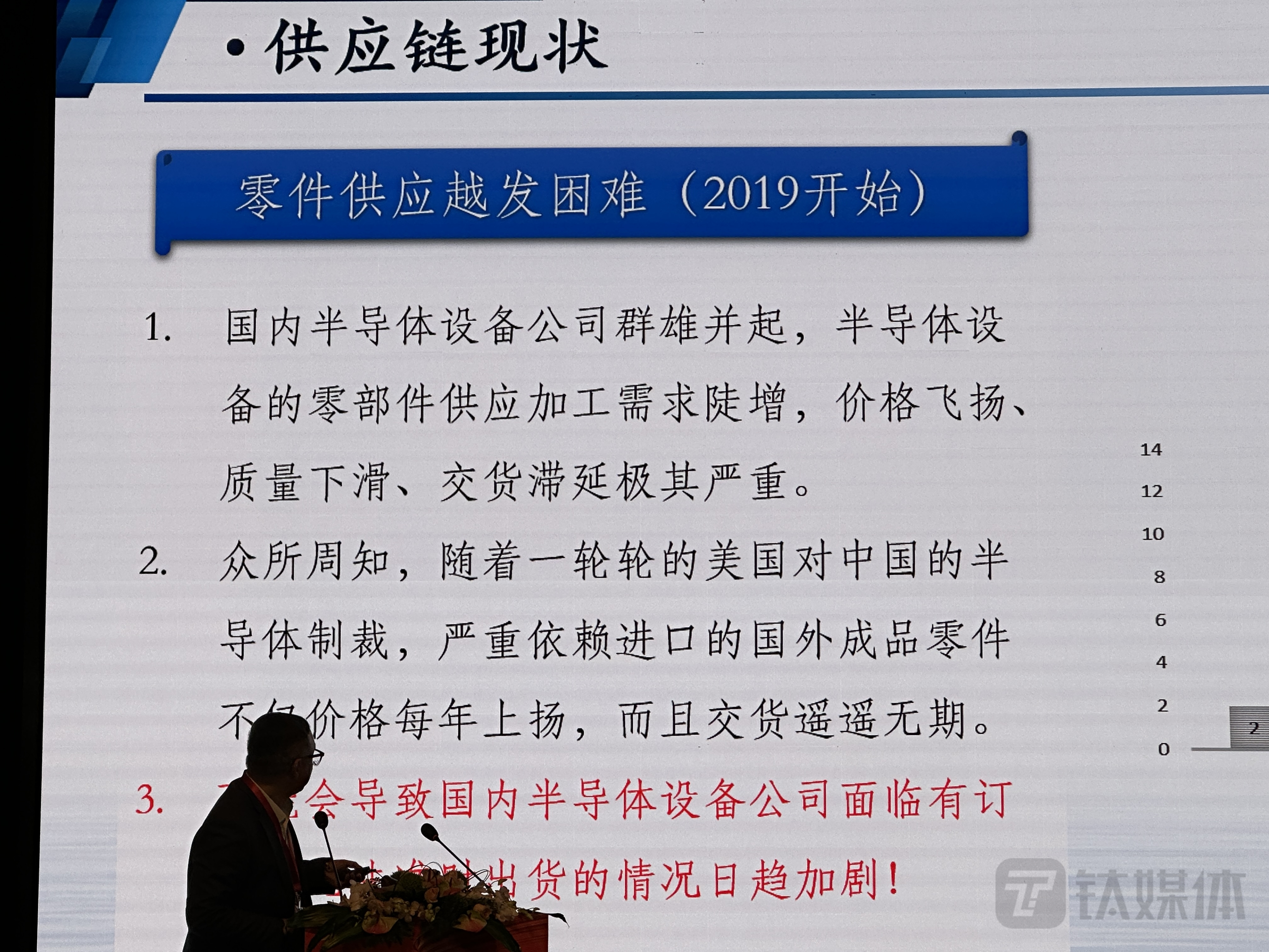 一家半导体材料企业负责人在本月初的一场活动中表示,2019年开始,零件供应情况越发困难。随着一轮轮的美国对中国的半导体制裁,严重依赖进口的国外成品零件不口价格每年上扬,而且交货遥遥无期。