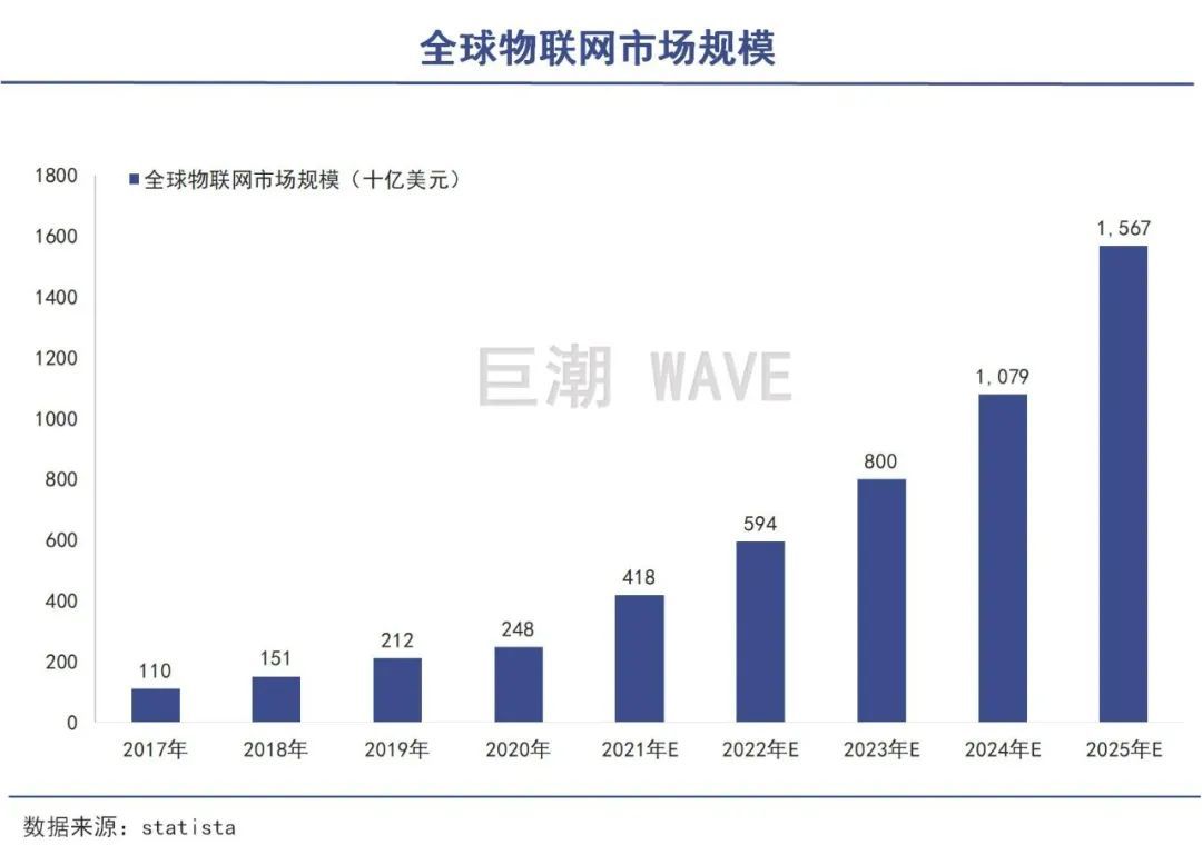 商业数据平台statista数据显示,2020年全球物联网市场规模达到2480亿美元,预计到2025年市场规模将超过1.5万亿美元,复合增长率达到44.59%。而根据CIC灼识咨询数据,据2020年赋能的智能设备数计算,涂鸦智能是全球最大的IoT PaaS公司,其受到彼时美股市场的热捧也因此顺理成章。