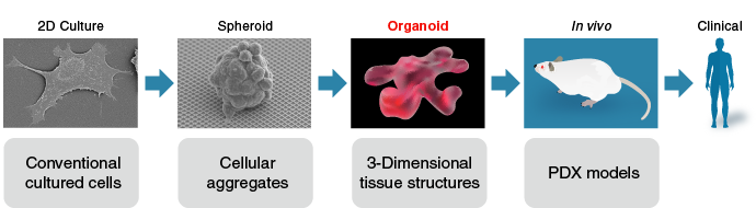 类器官应用之前,研究者试图通过完善模型来解决这一点。以肿瘤研究模型为例,其经过几番迭代。从上世纪美国国家癌症研究所推出的NCI-60——60种癌症细胞系及基于这些细胞系的CDX模型的,到后来的人源性肿瘤组织异种移植(PDX)模型,人类改善研究模型的终极目标,都是在追求无限接近人体。