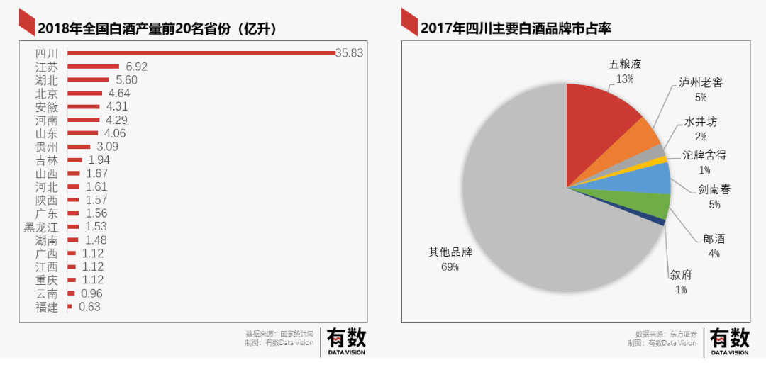 而在江小白的产地四川,白酒产量一枝独秀吊打全国,本土白酒品牌百花齐放,竞争本就激烈。又因为超高端品牌中,五粮液和泸州老窖都在此地,想要谋求本土竞争难上加难。