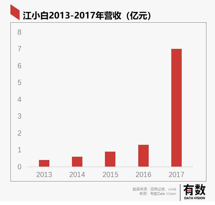 在2013年-2017年间,江小白营收飞速增长,单从增速来看,连茅台也拍马难及。