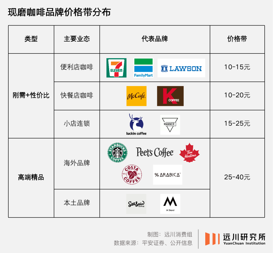 一是高端精品路线,以星巴克、M Stand等品牌为代表,或提供高定价的精品咖啡,或用第三空间来换取溢价;