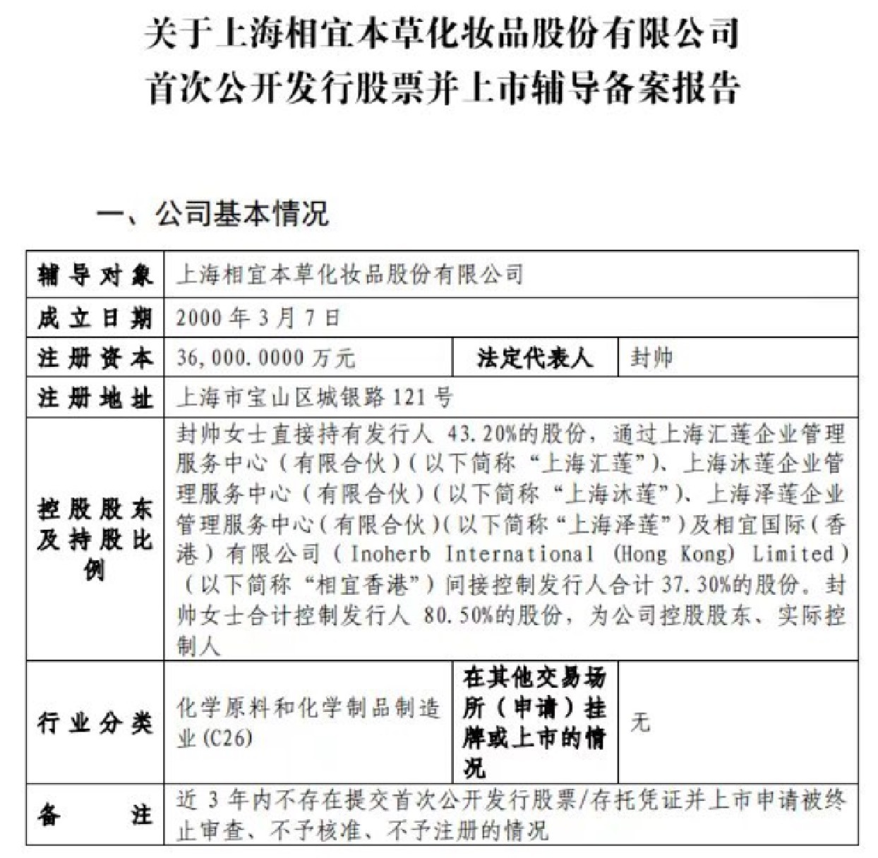11月15日,中国证券监督管理委员会官网披露信息显示,上海相宜本草化妆品股份有限公司已于11月10日同中金公司签署上市辅导协议,拟于A股挂牌上市。