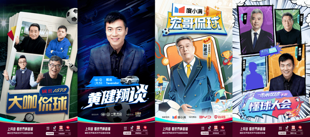 抖音提前一周上线【上抖音看世界杯】专题页,为黄健翔、范志毅等名嘴定制的栏目拉到了蒙牛、剑南春等多家赞助;央视提前一个月邀来谭咏麟用《这young的世界杯》造势;咪咕则发布了由宋世雄、王濛、詹俊领衔的咪咕解说天团宣传片,主打“元宇宙看世界杯上中国移动”的概念。