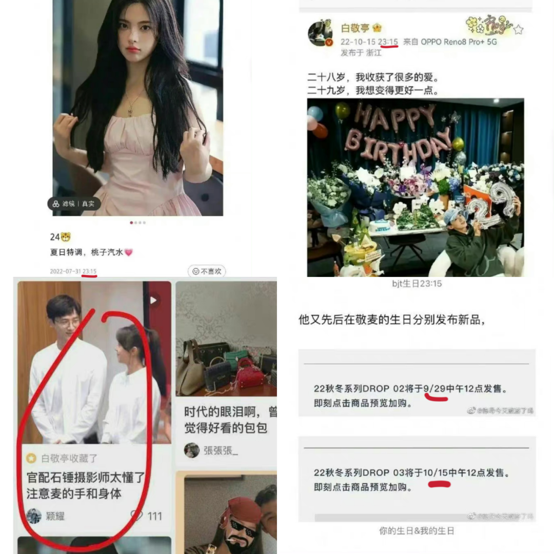 除了现在炒cp标配——从正片到花絮,从戏内到戏外,以暧昧的行为举止配合,白敬亭还有一些抽丝剥茧的“糖”给cp粉,为嗑糖增加无穷兴味。比如白敬亭生日卡点的时间23:15和杨超越的生日发博时间一样;他还曾在小红书上收藏了他和赵今麦的cp贴;以及选了赵今麦生日与自己生日这两天开自己的潮牌新品发布会等等。至于他的潮牌同款,则是很多女明星人手一份。