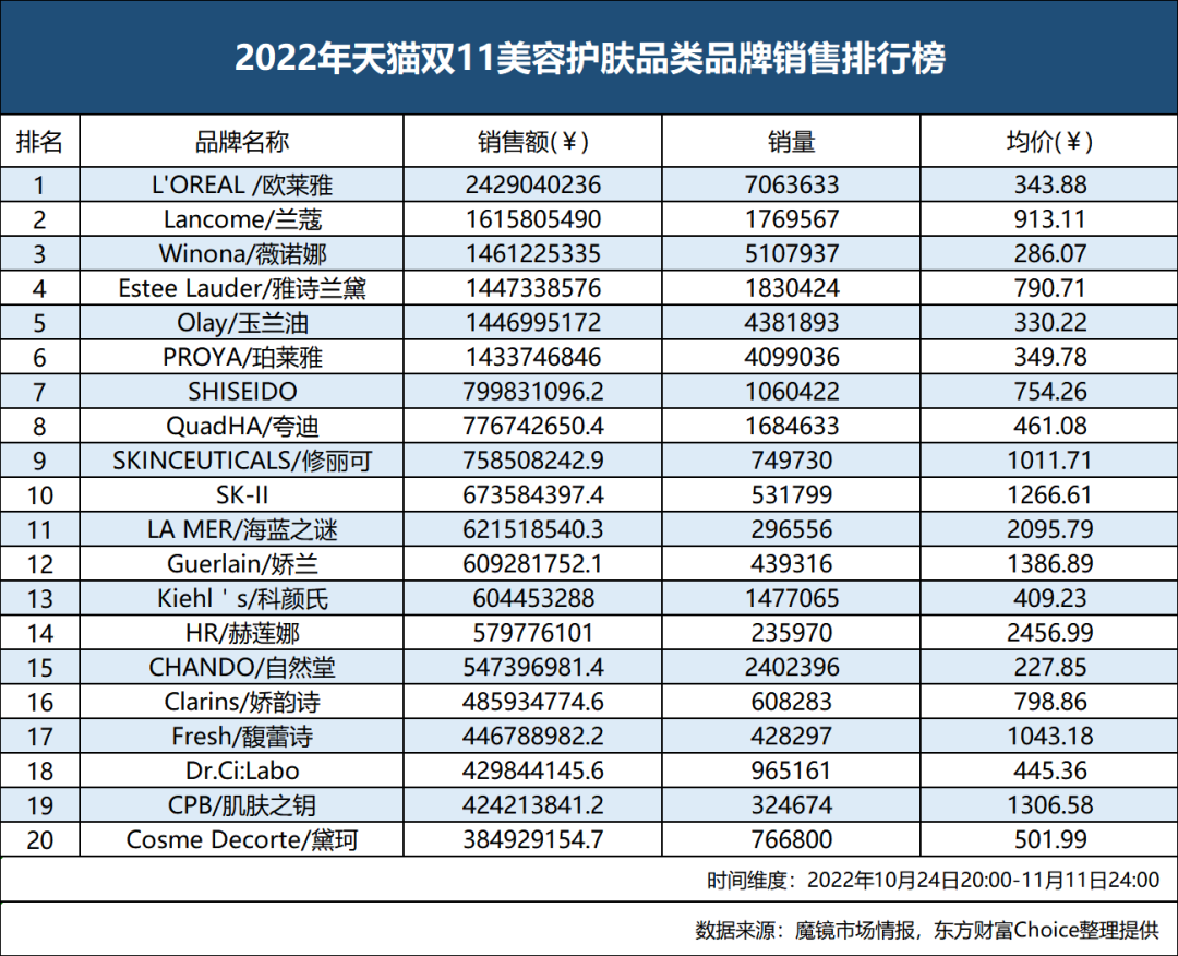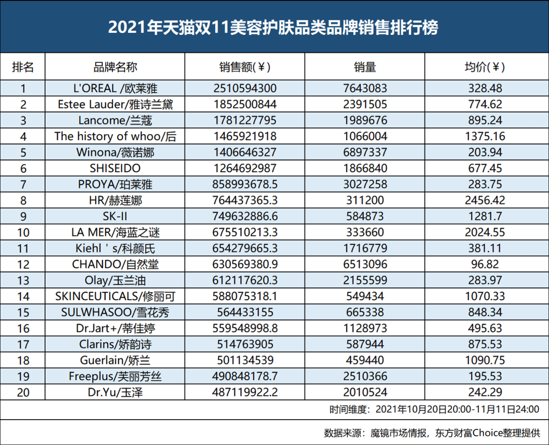最近两年都稳居第1的欧莱雅,今年销售额24.3亿元,同比下降3.2%,海蓝之谜、赫莲娜、后等国外品牌,则纷纷跌出前10名。