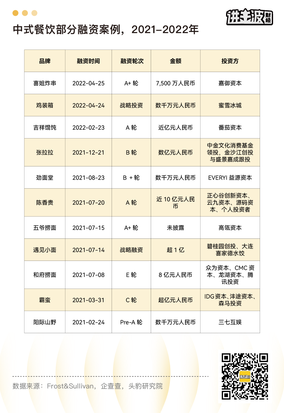 而在挂面撑起IPO之前,碳水生意的赛道上,就掀起了一阵“粉面投资热”。企查查数据显示,2021年,速食面、实体面馆等粉面品牌的投融资事件超过25起,比其他中式快餐投融资事件总和的两倍还要多。