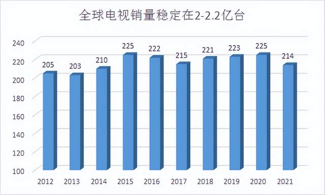 长期看,不出意外的话,TV作为面板消费主力会保持在一个长期稳定的销量,过去10年全球TV销量一直稳定在2-2.2亿台的区间。