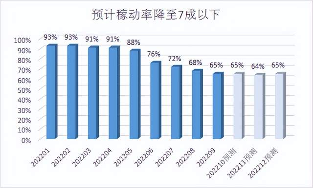 根据Forecast数据,2022年4月开始,各大面板厂纷纷加大减产力度,在三季度末稼动率已降低至7成以下。在价格恢复到合理水平前,预计行业稼动率将维持低位运行。