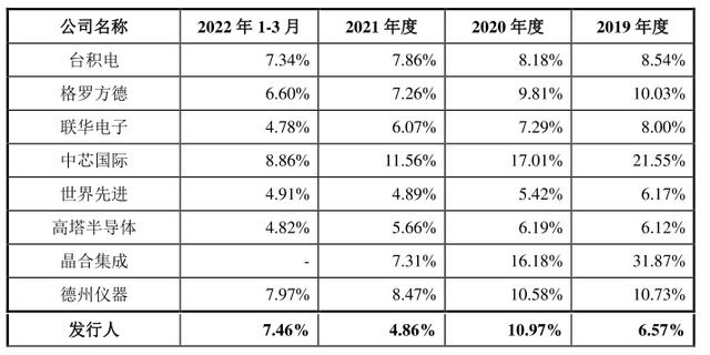 图6:全球主要芯片代工企业毛利率对比,资料来源:华虹半导体招股书