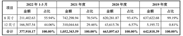 图8:公司主营业务收入按照晶圆规格分类情况(单位:万元),资料来源:华虹半导体招股书
