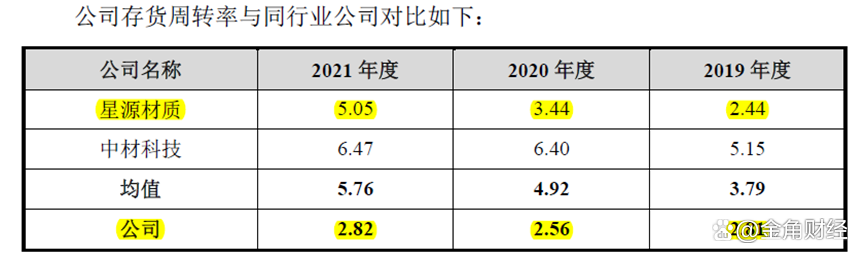 2020-2021年,恩捷股份存货周转率仅有2.56和2.82,同期星源材质分别为3.44和5.05。