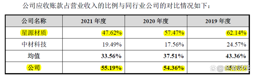 资料显示,2019-2021年,星源材质和中材科技的应收账款营收占比均有所下降,星源材质由62.14%下降至47.62%,中材科技由24.57%下降至19.49%。
