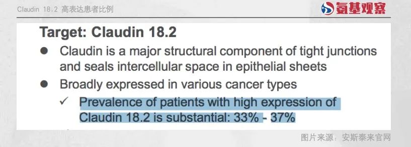 而在所有实体瘤中,Claudin18.2高表达患者仅占33%—37%;在患者群体规模最大的胃癌领域,高表达患者占比更是仅有20%左右。