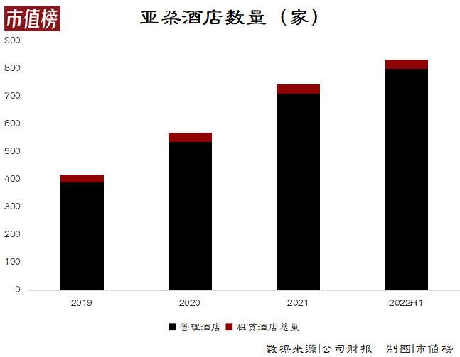 2016-2021年,亚朵的管理酒店数量复合增长率达到了62.9%。截至2022年上半年底,亚朵管理酒店的数量达到801家,占比96%,规模几乎都是由加盟商撑起来的。