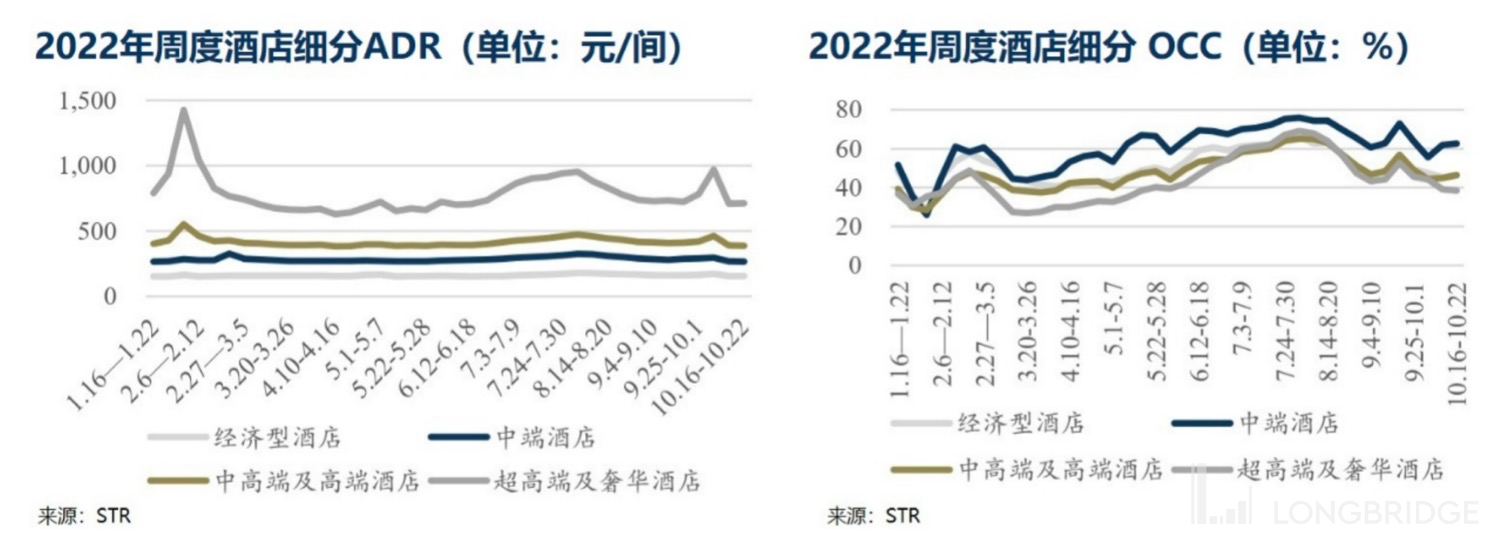 2022 年第三季度,所有在营 Legacy-Huazhu 酒店的 Occ 为 76.0%,比 2021 年同期 71.9% 提升 4.1pct,比疫情前 2019 年第三季度 87.7% 的入住率依旧有所下降,还有 11.7pct 的差距。不过从行业数据对比来看,华住这样的成绩已经算是不错了。