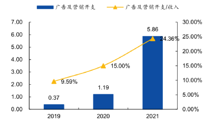 广告及营销开支及占营收比例,来源:招股说明书、国元证券