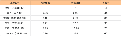 在这些鞋服上市公司中,稳健扩张的百倍牛股Lululemon(LULU.US)的市盈率也不及蕉下。