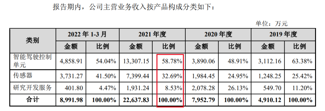 从招股书披露的2021年数据来看,目前纵目科技的主要收入来源于域控制器,收入占比达到59.78%,而硬件传感器和研究开发服务则分别占比32.69%和8.53%。