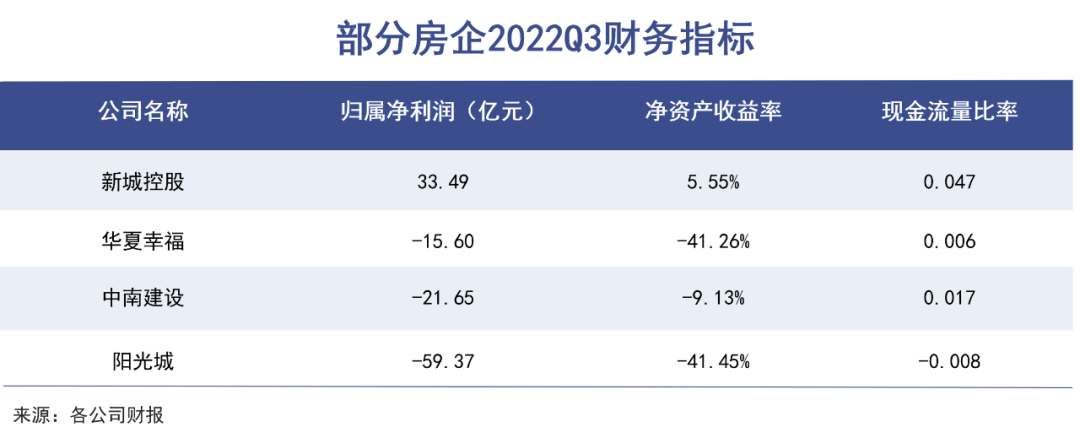 在房企中还算“优质”的新城控股,虽然净利润一直为正数,但是盈利能力和偿债能力都不强。华夏幸福、中南建设、阳光城等知名房企,更是早已陷入了净利润为负的困境。