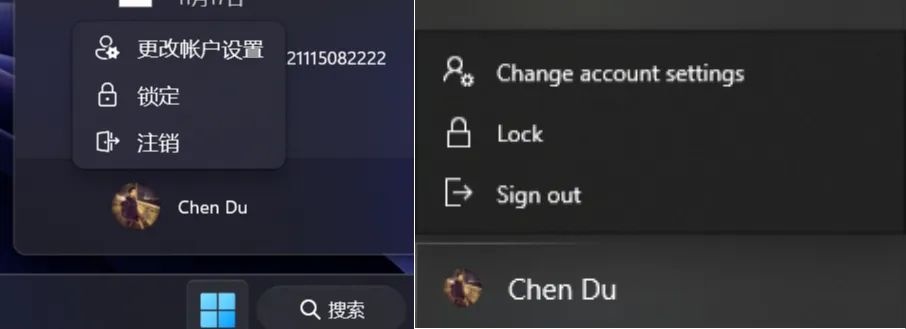 用户会话飞出菜单(中英文,Win 11、Win 10) 图片来源:硅星人