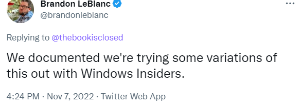 LeBlanc 进一步表示,更新文档就是故意写得模糊一点,为了不影响 Insider 用户的观感,从而获取他们对于新改动的更真实的反馈。