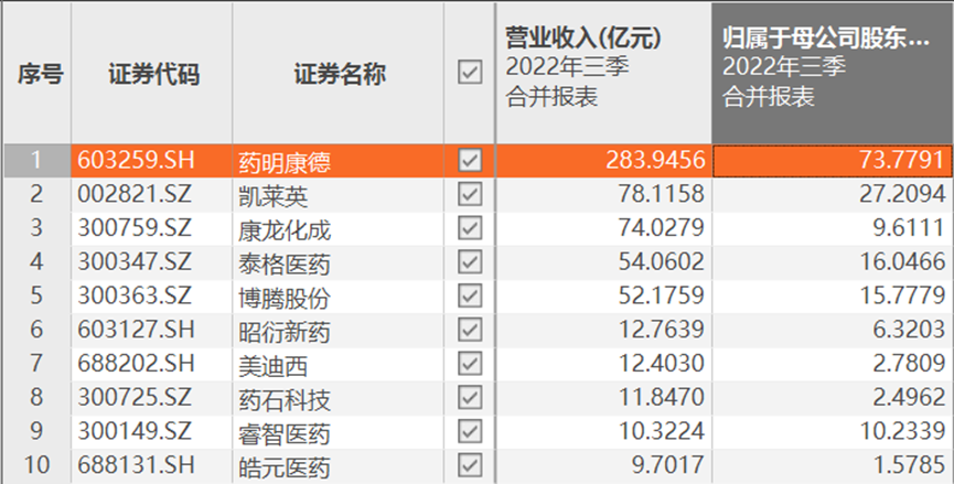 不断对外投资和高速增长下,药明康德进一步巩固了龙头地位,规模遥遥领先A股其他医疗外包公司,营收和净利润分别为排第二名的凯莱英德的3.63倍和2.71倍。