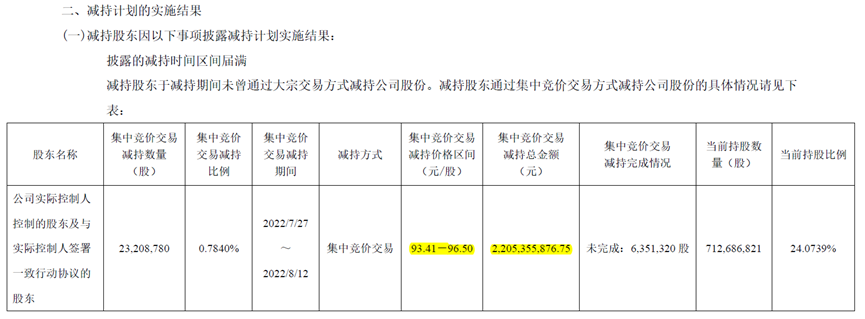 今年7月27日至8月12日间,药明康德实控人和一致行动人就合计减持了2320万股,减持金额高达22.05亿。