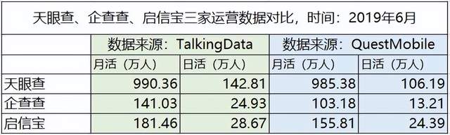 TalkingData和QuestMobile数据显示,2017年,天眼查月活跃用户开始超过企查查。2017年8月,天眼查创始人柳超透露,以百度指数衡量,天眼查已是行业第二名的5倍、第三名的9倍,日均访问在千万级。TalkingData数据还显示,从2019年4月起,天眼查人均单次使用时长赶超企查查。