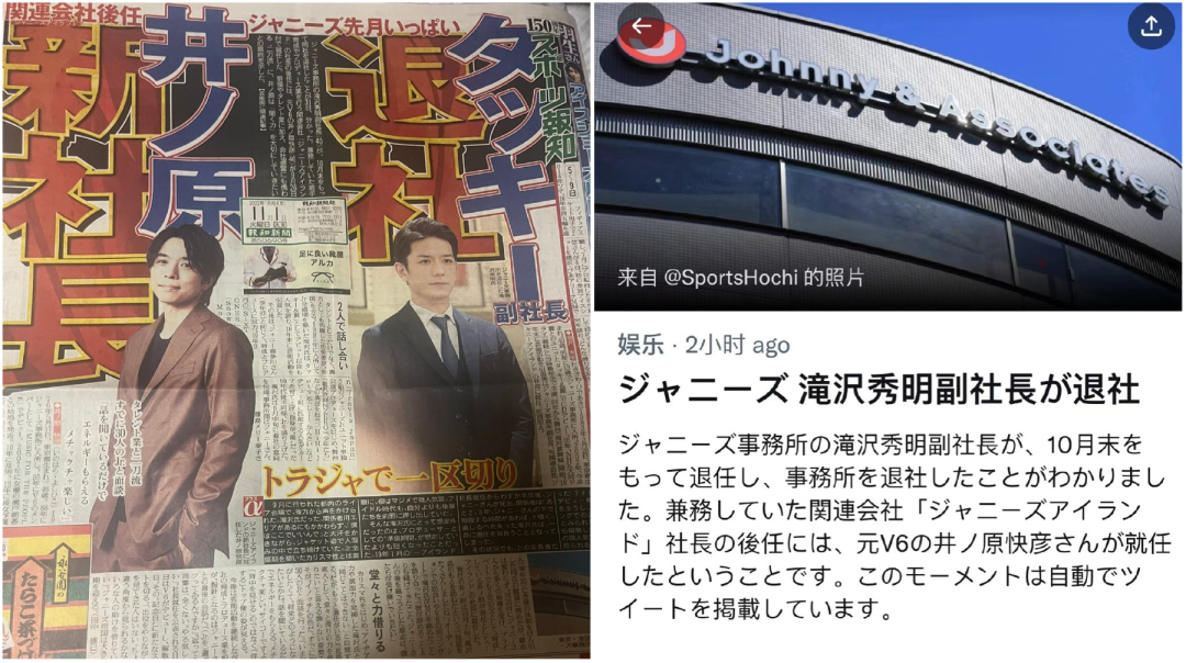2019年喜多川去世后,此前一直被媒体认为“作为继承人培养”的泷泽秀明担任起了副社长一职。早在此前,杰尼斯就隐隐有了“村通网”的迹象。