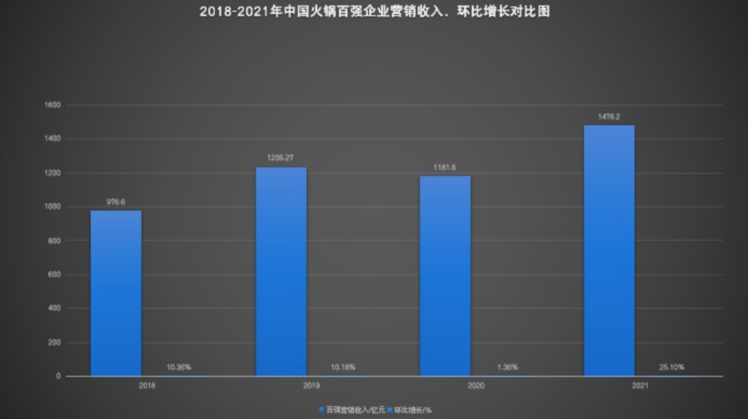 以火锅行业为例,2021年,百强火锅企业全年实现销售收入1478.2亿元,比2020年的1181.6亿元环比提高25.1%,成为百强火锅销售收入年均发展最快的一年。多位从业者表示,2022可能很惨,但“总会好起来的”。