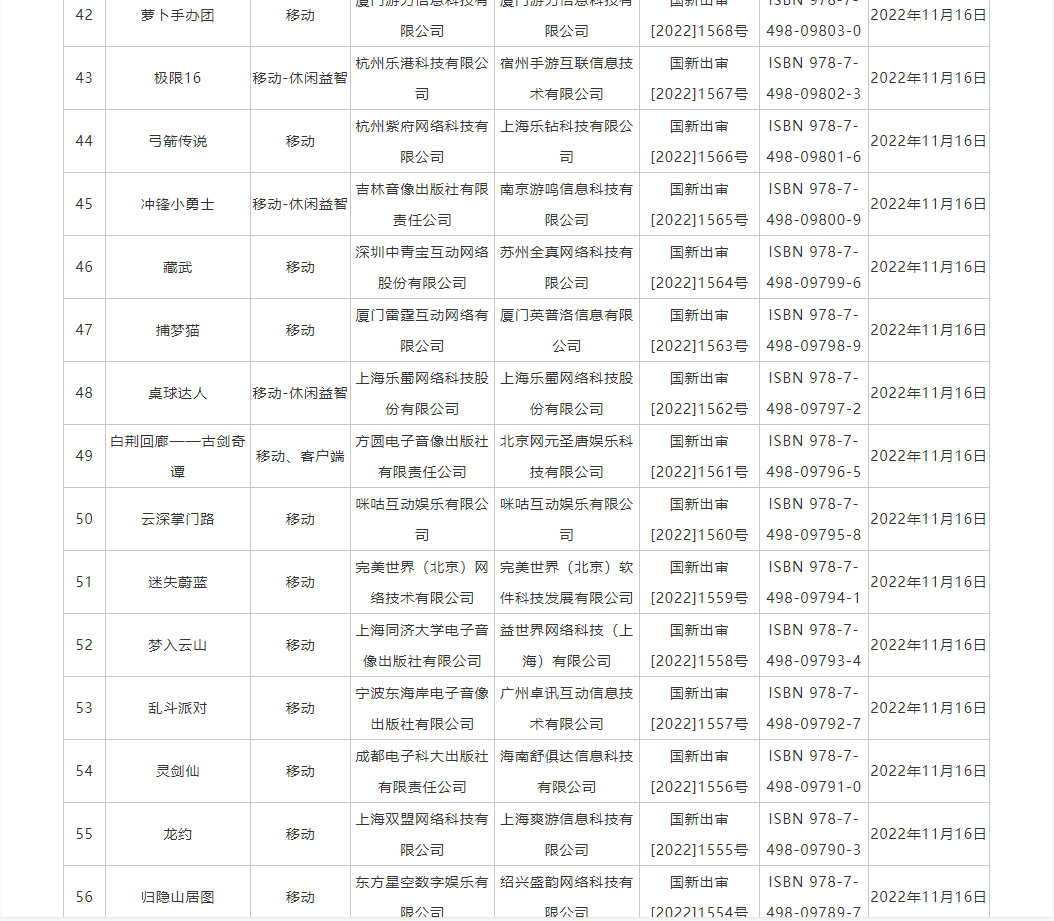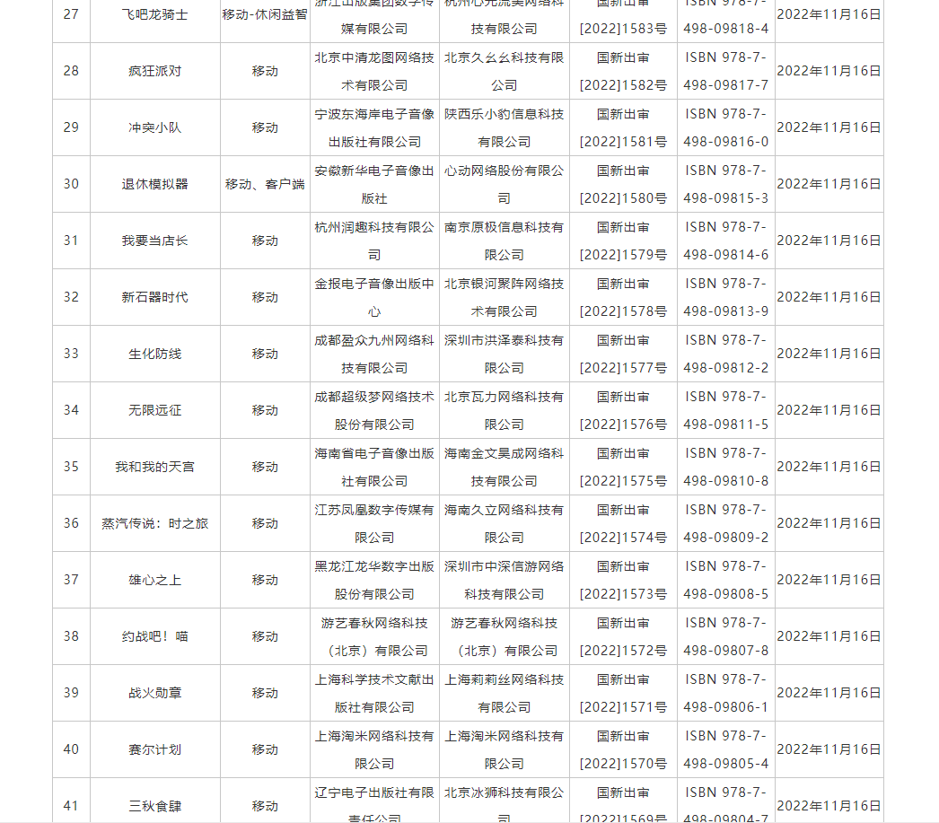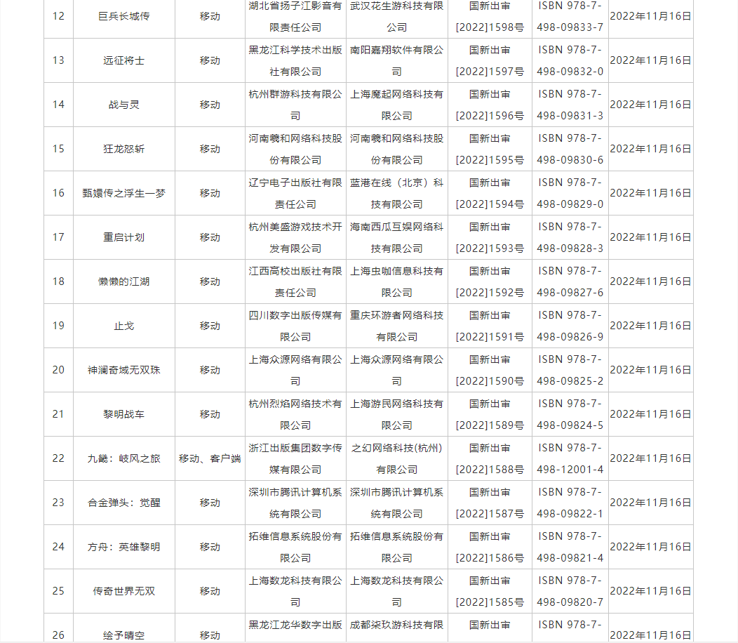 一些大厂产品这次都拿到了版号,包括腾讯的《合金弹头:觉醒》、网易的《大话西游:归来》、完美世界的《迷失蔚蓝》、中手游的《吞噬星空:黎明》、心动网络的《退休模拟器》、莉莉丝的《战火勋章》等。另外,此前在Steam备受好评、9月上线正式版的《太吾绘卷》也在本轮版号名单中。